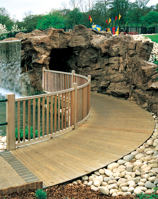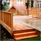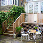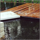 Decks raised off the ground may require a handrail or steps leading up to them. Lloyd Christie achieves the best results when designing the handrail or the steps as part of the substructure, providing a seamless and more structurally sound deck.