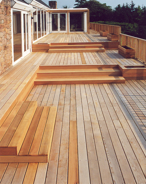 Timbers used for decking range from treated softwood to several types of hardwood and more recently composite materials, which include recycled plastics and timber waste. In terms of durability there is not much difference between treated softwood and hardwoods.